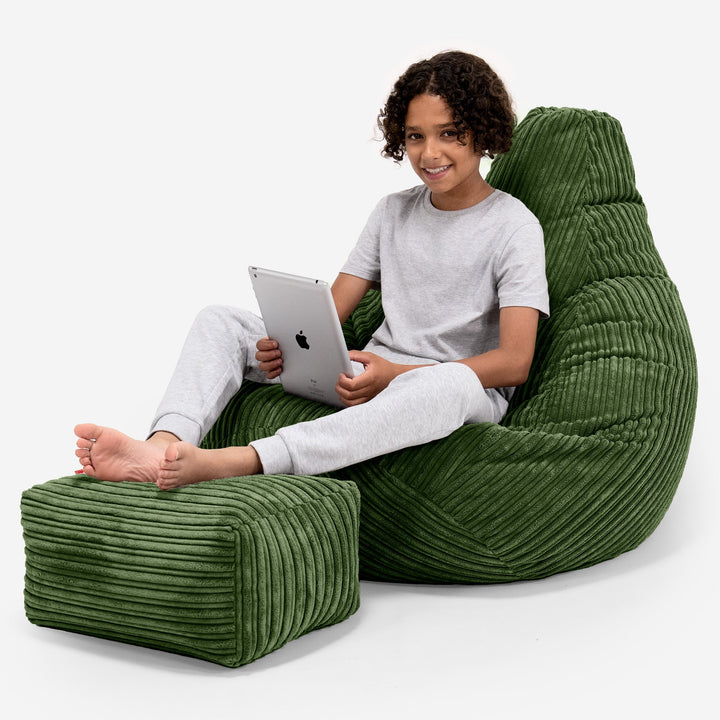 Lounge Pug Gaming Saccosekk Stol for Barn 6-14 år, Gamingsekk, Kordfløyel Skoggrønn– Big Bertha Original NO