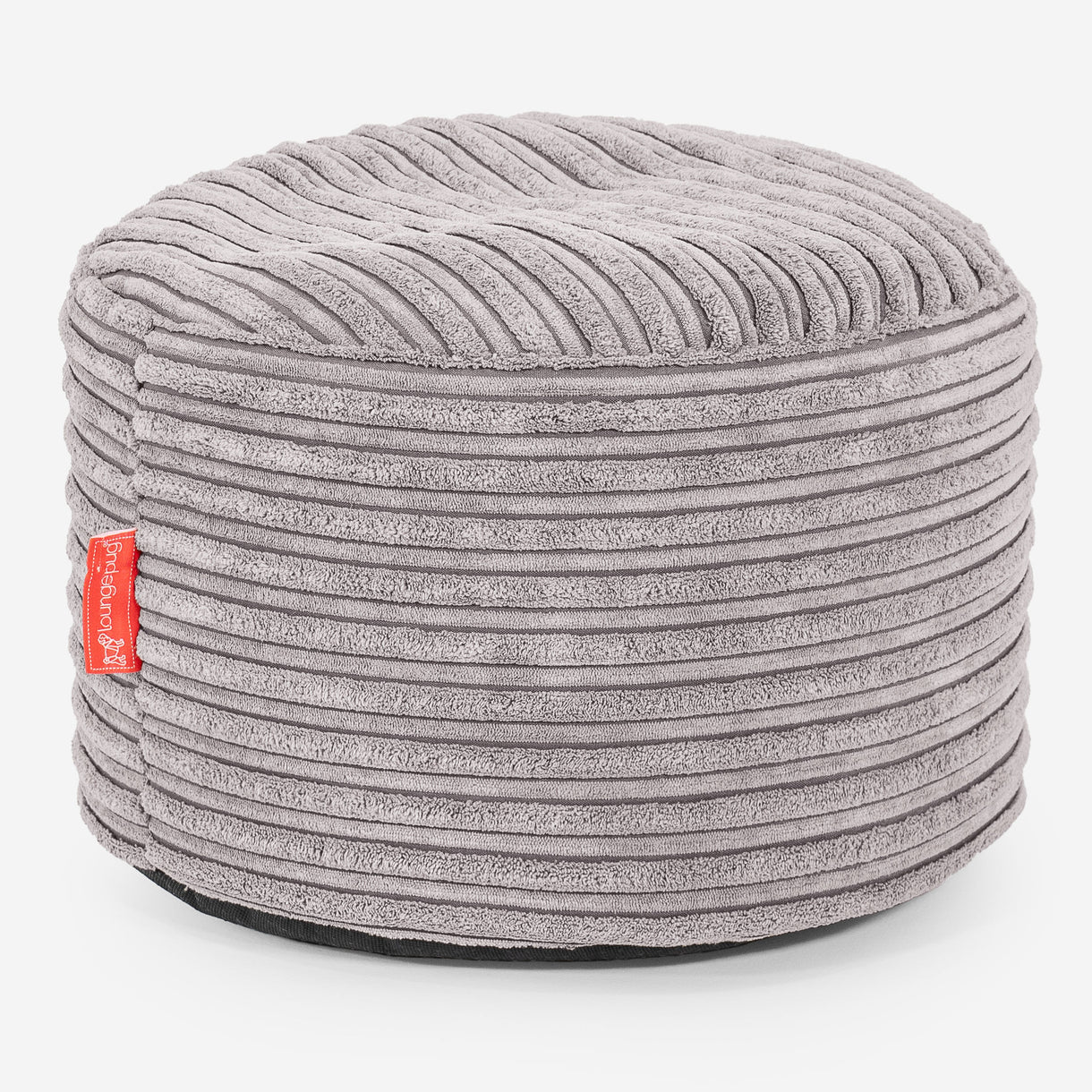 Lounge Pug Liten Rund Fotskammel Kordfløyel Sølvgrå– Big Bertha Original NO