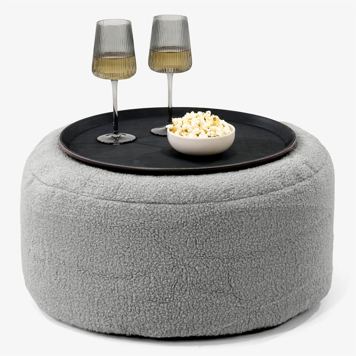Ottoman Puff med Serveringsbrett Bouclé Grå