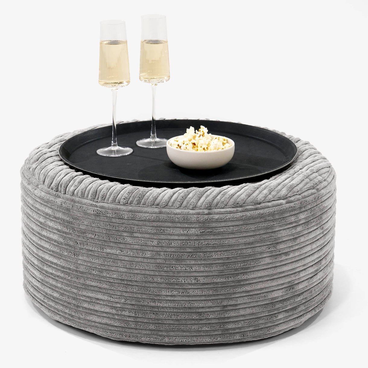 Lounge Pug Ottoman Puff med Serveringsbrett Kordfløyel Grafitt– Big Bertha Original NO