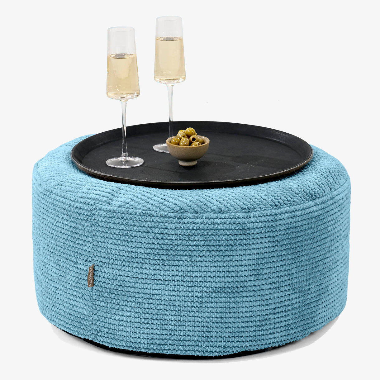 Lounge Pug Ottoman Puff med Serveringsbrett Pom-pom Turkis– Big Bertha Original NO